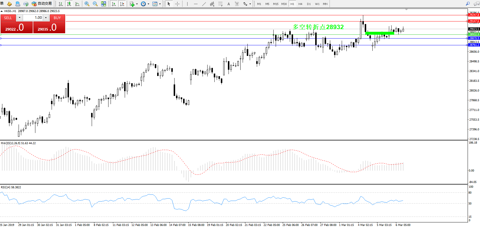 中国内地股市全天基本呈震荡格局,尾盘在券商的带动下拉升。据证券时报报道,国家发改委副主任宁吉喆在2019年全国两会的记者会上表示,消费结构是升级的,去年居民食物支出占消费支出的比重已降到28%左右,已达到中等收入国家水平,服务消费支出已占到50%。香港恒生指数全天在平盘线上方震荡,截至收盘,恒指微涨0.26%,报29037.60点。美国2月ADP就业人数增幅不及预期,美国2月ADP就业人数增加18.3万,预期增加19万,前值增加21.3万,只要就业人数超过10万,在当前周期下就是十分健康的水平。
