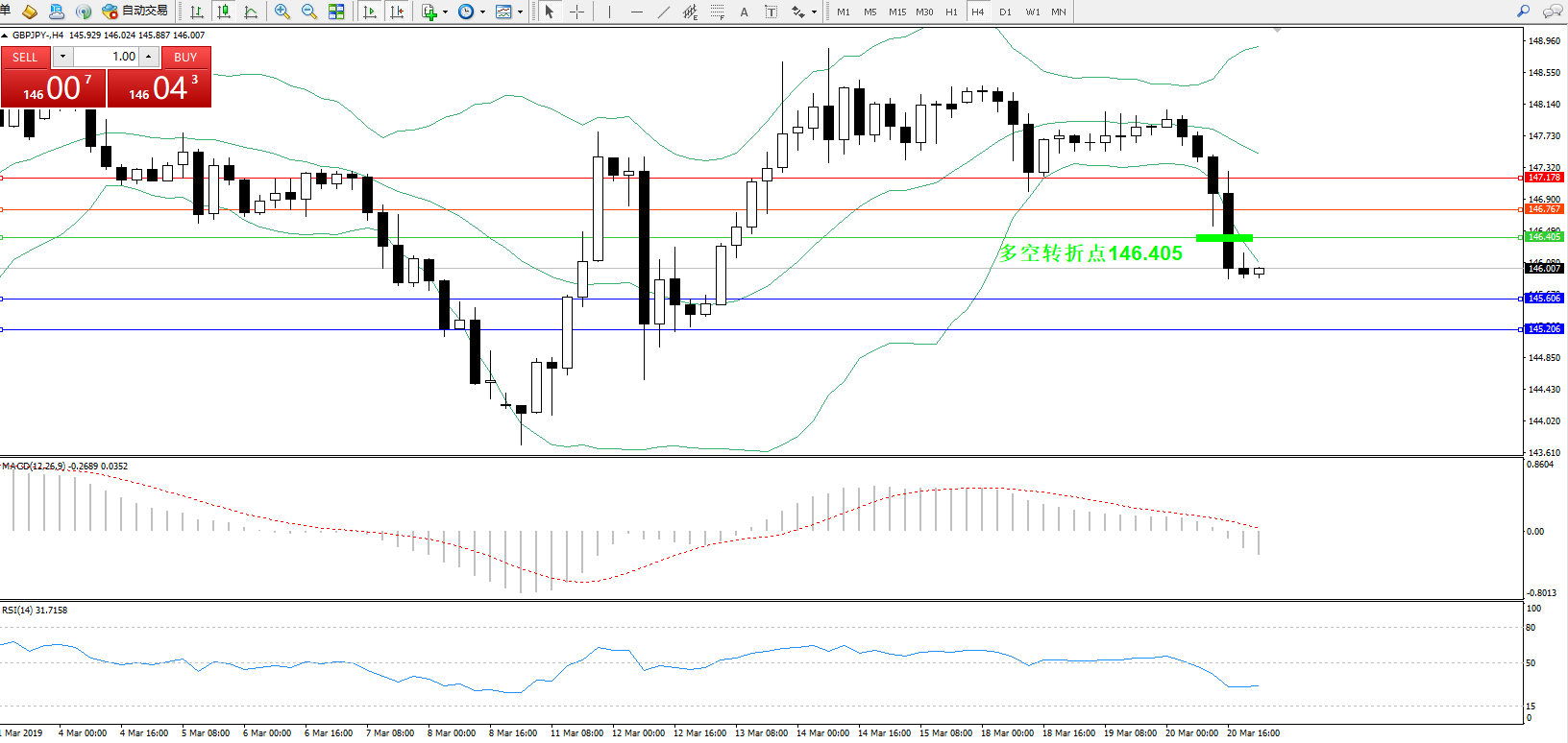 交易策略:146.405下方看跌,目标145.606、145.206