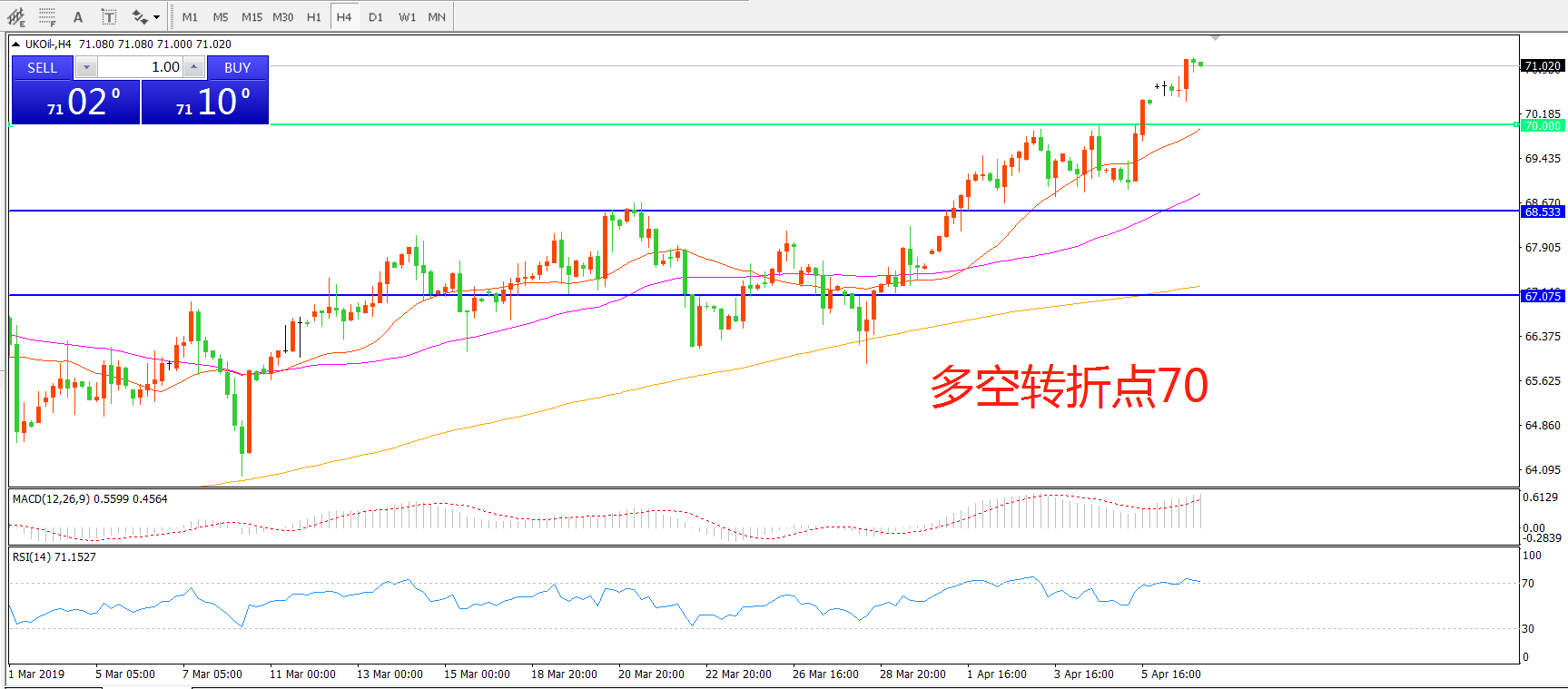 多空转折点:70.00