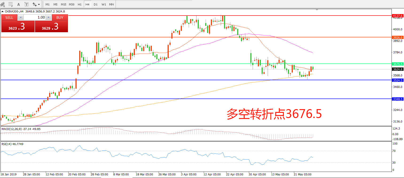 交易策略:在3676.50之下看跌,目标3524.50     3348.50