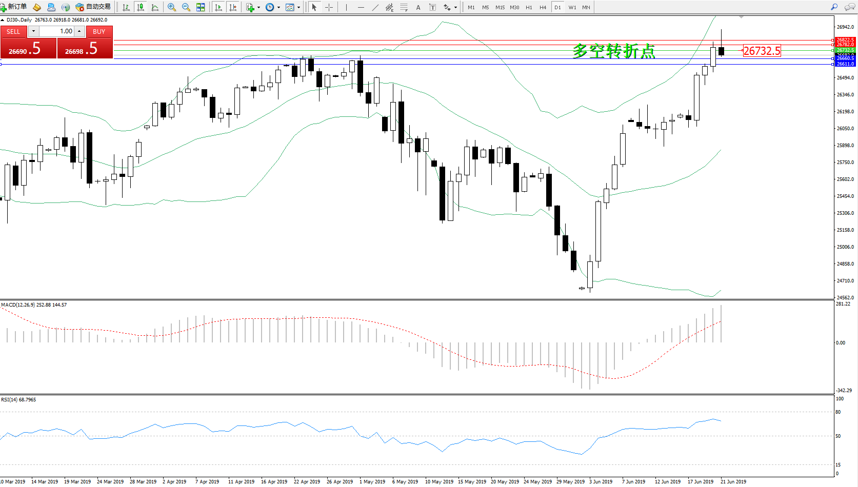 道琼斯指数收跌33.80点,跌幅0.13%,报26719.33点。美国5月成屋销售数据出炉后,美元短暂上涨,这一令人鼓舞的消息抵消IHS Markit数据的影响;该数据显示,美国6月制造业采购经理人指数(PMI)初值降至2009年9月以来最疲弱水平,服务业PMI下滑至2016年2月以来最低水平。周五公布的美国经济数据并未改变交易商对美联储最早将于7月下调主要借贷利率的预期。道明证券前瞻纽约联储主席威廉姆斯讲话:北京时间6月25日(周二)20:45,纽约联储主席威廉姆斯将在一场金融论坛致开幕词;预计,威廉姆斯不会偏离上周美联储会议纪要鸽派的立场,但此次讲话也有可能为美联储作出转变提供更多的信息;届时,威廉姆斯可能会透露自己在点阵图方面的态度。