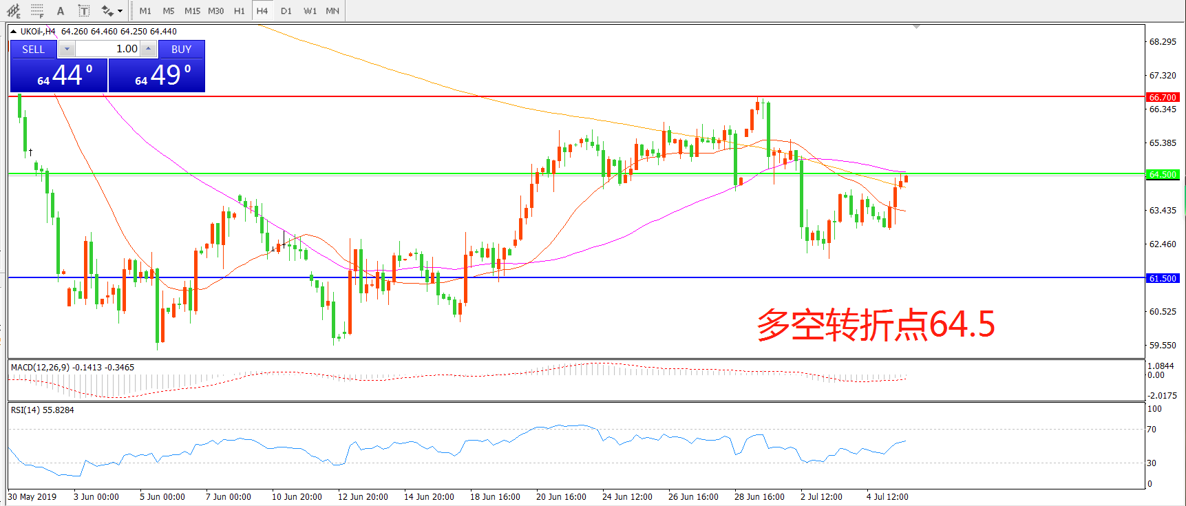 交易策略:在64.50之上看涨,目标66.70   70.00