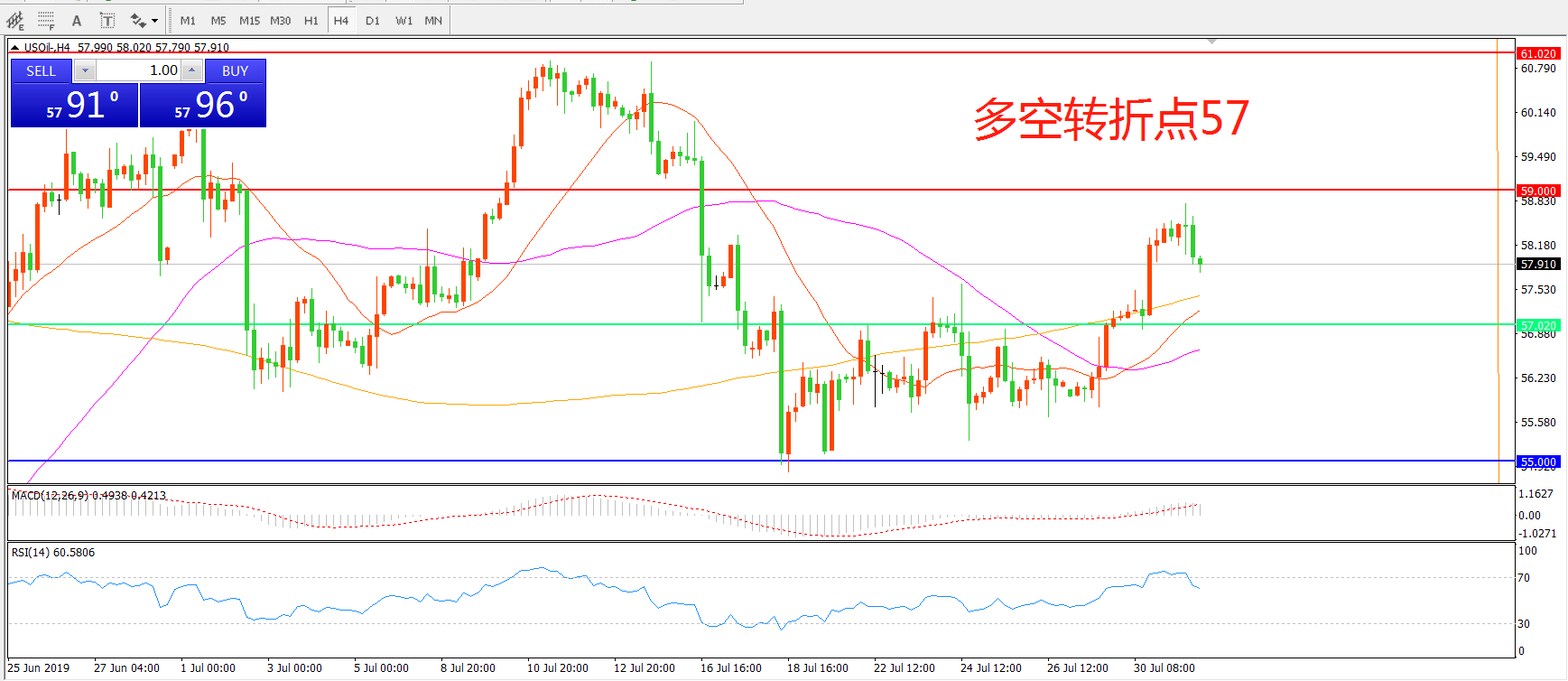 交易策略:在57.00之上看涨,目标59.00   61.00