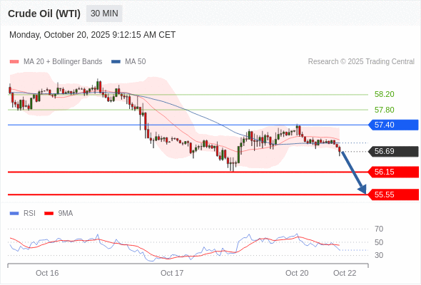 在 57.40 之下,看跌,目标价位为 56.15 ,然后为 55.55 。