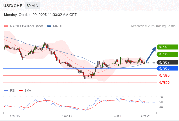 在 0.7910 之上,看涨,目标价位为 0.7950 ,然后为 0.7970 。