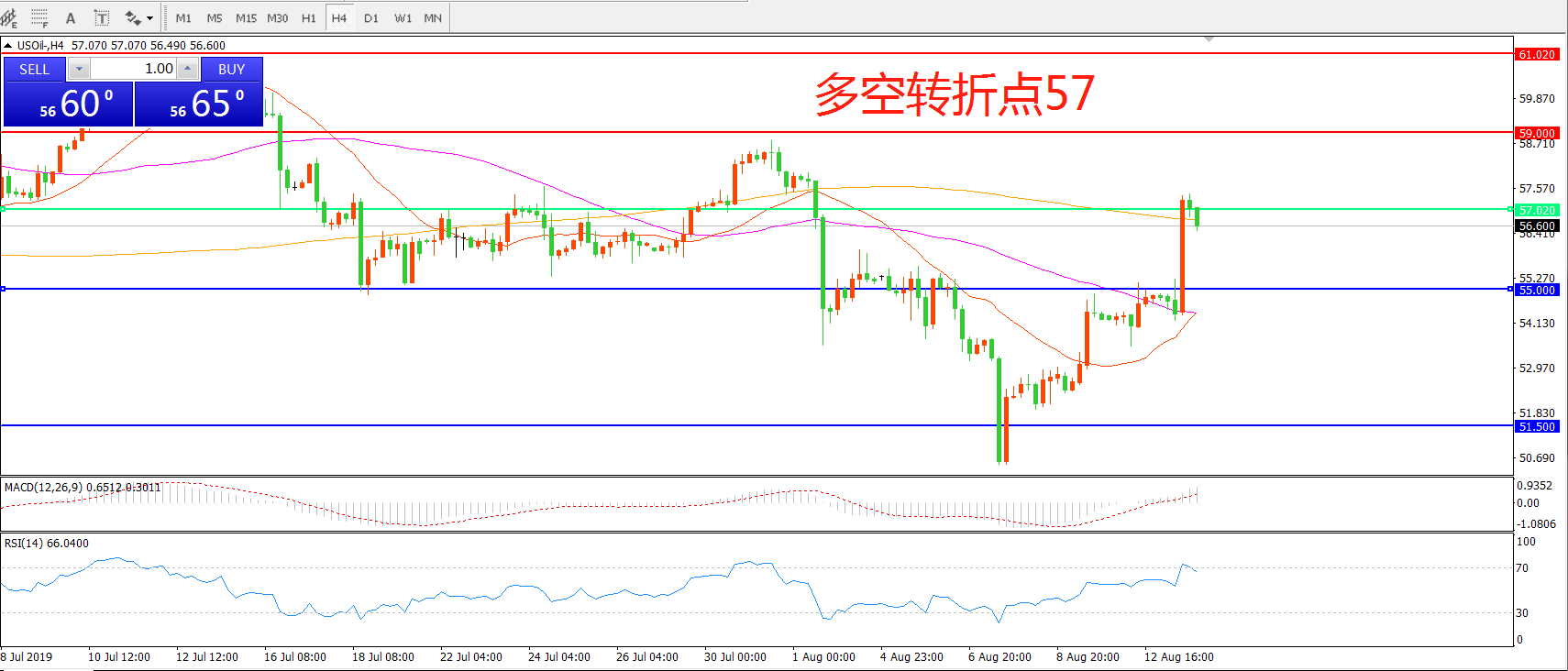 多空转折点:57.00