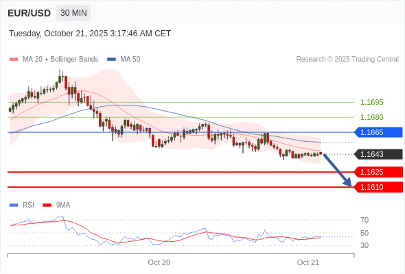 在 1.1665 之下,看跌,目标价位为 1.1625 ,然后为 1.1610 。