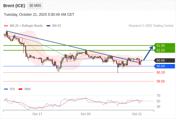 在 60.50 之上,看涨,目标价位为 61.50 ,然后为 61.80 。