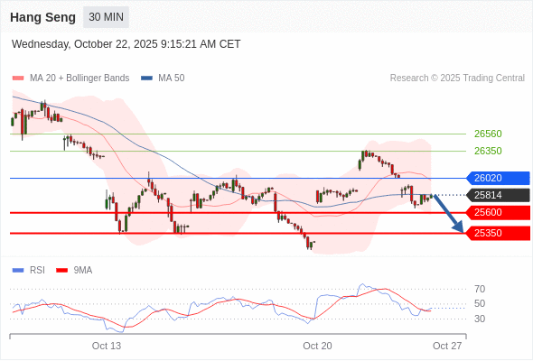 恒生指数 当日内: 短期关键阻力位在26020。