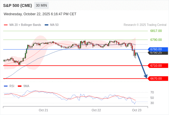 在 6760.00 之下,看跌,目标价位为 6710.00 ,然后为 6670.00 。