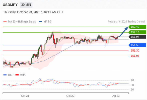 在 151.55 之上,看涨,目标价位为 152.15 ,然后为 152.40 。