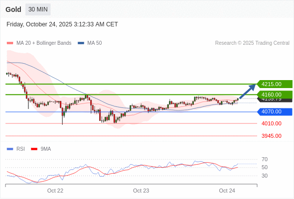 在 4070.00 之上,看涨,目标价位为 4160.00 ,然后为 4215.00 。
