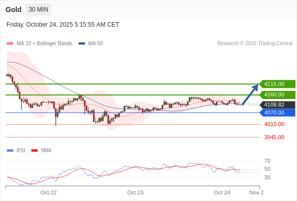 在 4070.00 之上,看涨,目标价位为 4160.00 ,然后为 4215.00 。