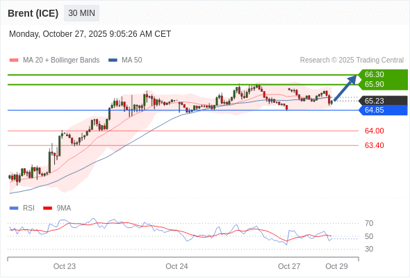 在 64.85 之上,看涨,目标价位为 65.90 ,然后为 66.30 。