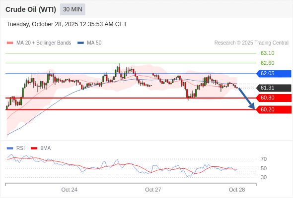 在 62.05 之下,看跌,目标价位为 60.80 ,然后为 60.20 。