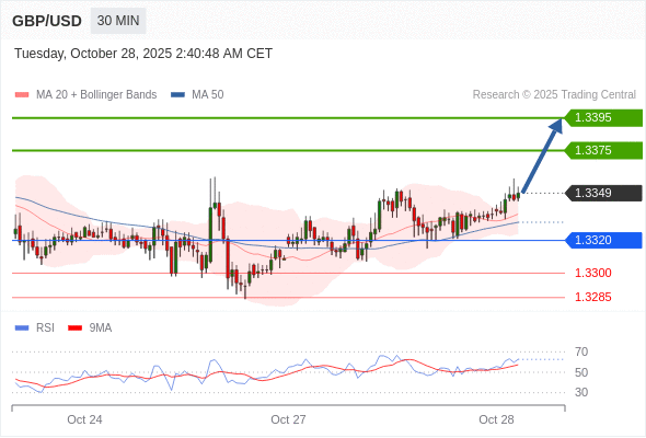 在 1.3320 之上,看涨,目标价位为 1.3375 ,然后为 1.3395 。