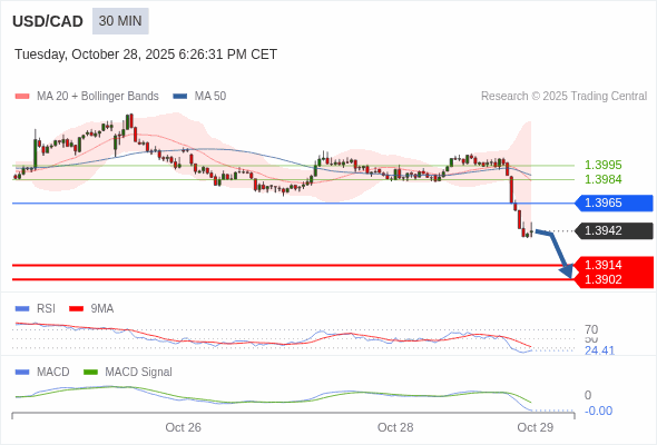 交易策略: 看跌,在 1.3965 之下。