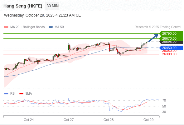 在 26450.00 之上,看涨,目标价位为 26670.00 ,然后为 26790.00 。