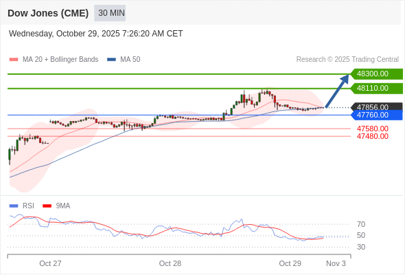 在 47760.00 之上,看涨,目标价位为 48110.00 ,然后为 48300.00 。