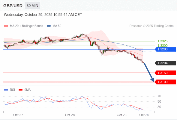 在 1.3280 之下,看跌,目标价位为 1.3150 ,然后为 1.3100 。