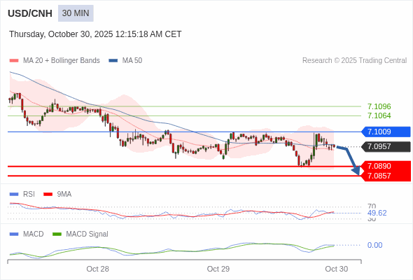 交易策略: 当 7.1009 维持阻力位时,存在回归 7.0857 的风险。