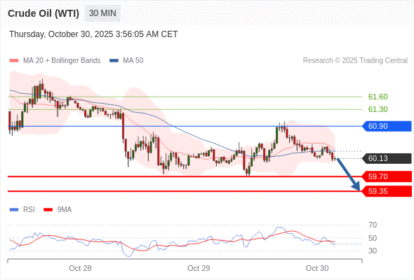 交易策略: 在 60.90 之下,看跌,目标价位为 59.70 ,然后为 59.35 。