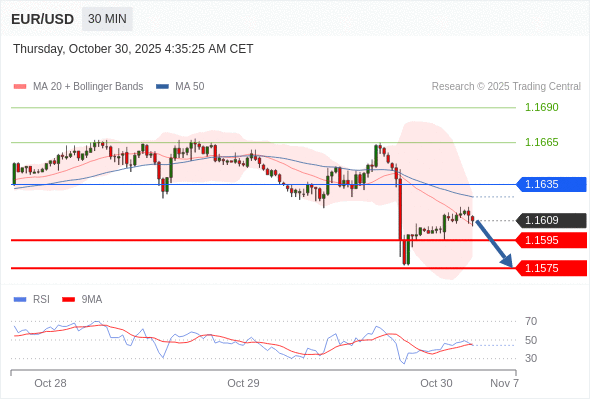 在 1.1635 之下,看跌,目标价位为 1.1595 ,然后为 1.1575 。