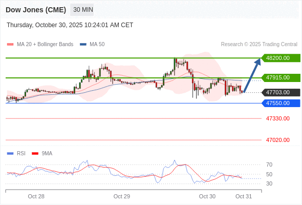 在 47550.00 之上,看涨,目标价位为 47915.00 ,然后为 48200.00 。