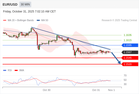 交易策略: 在 1.1595 之下,看跌,目标价位为 1.1545 ,然后为 1.1520 。