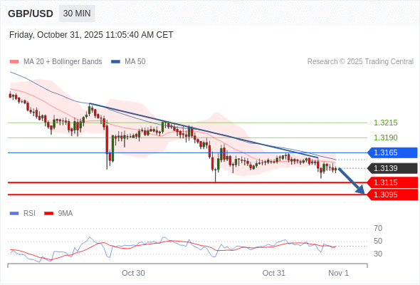 在 1.3165 之下,看跌,目标价位为 1.3115 ,然后为 1.3095 。