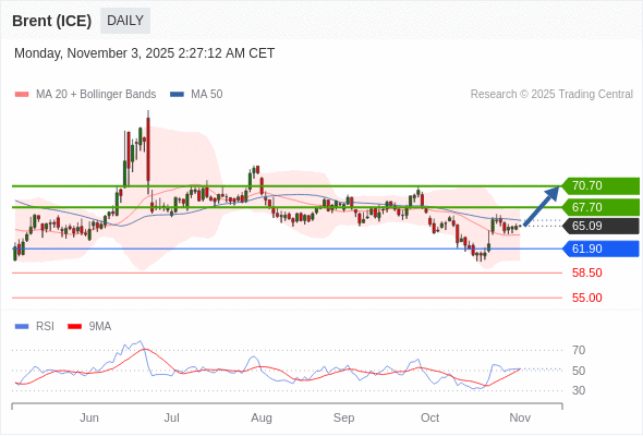 在 61.90 之上,看涨,目标价位为 67.70 ,然后为 70.70 。