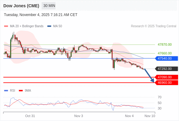 在 47540.00 之下,看跌,目标价位为 47090.00 ,然后为 46960.00 。