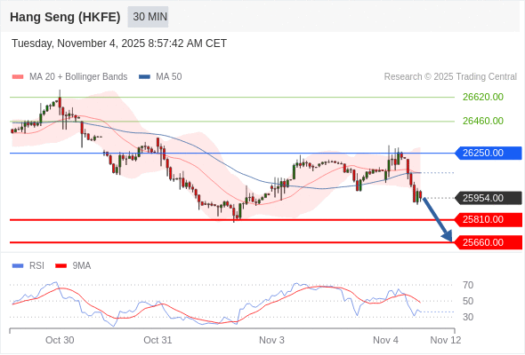 交易策略: 在 26250.00 之下,看跌,目标价位为 25810.00 ,然后为 25660.00 。