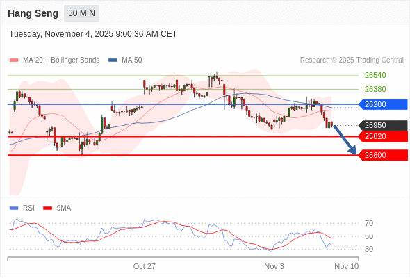 在 26200 之下,看跌,目标价位为 25820 ,然后为 25600 。