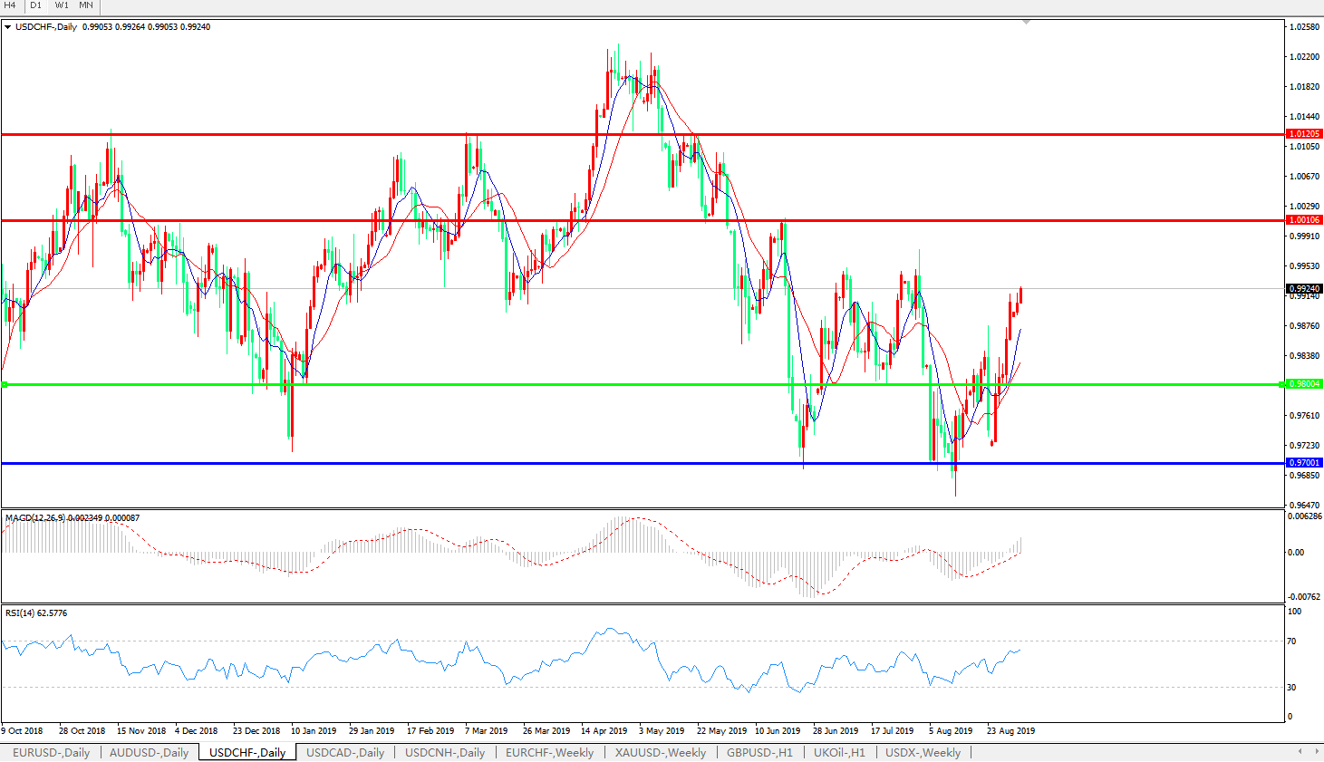 美元瑞郎USDCHF   日线图: