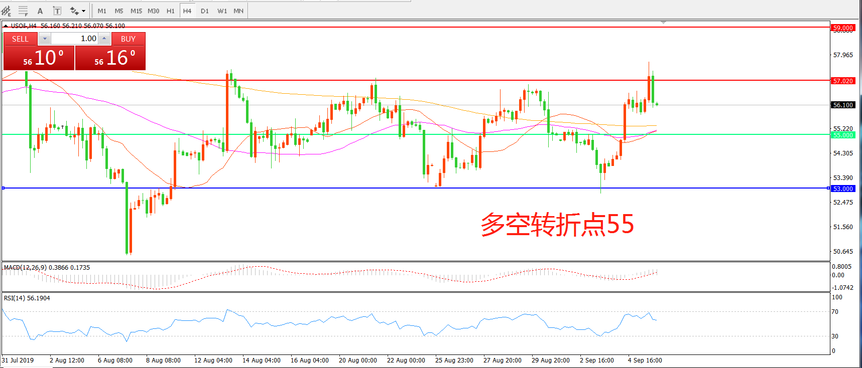交易策略:在55.00之上看涨,目标57.00   59.00
