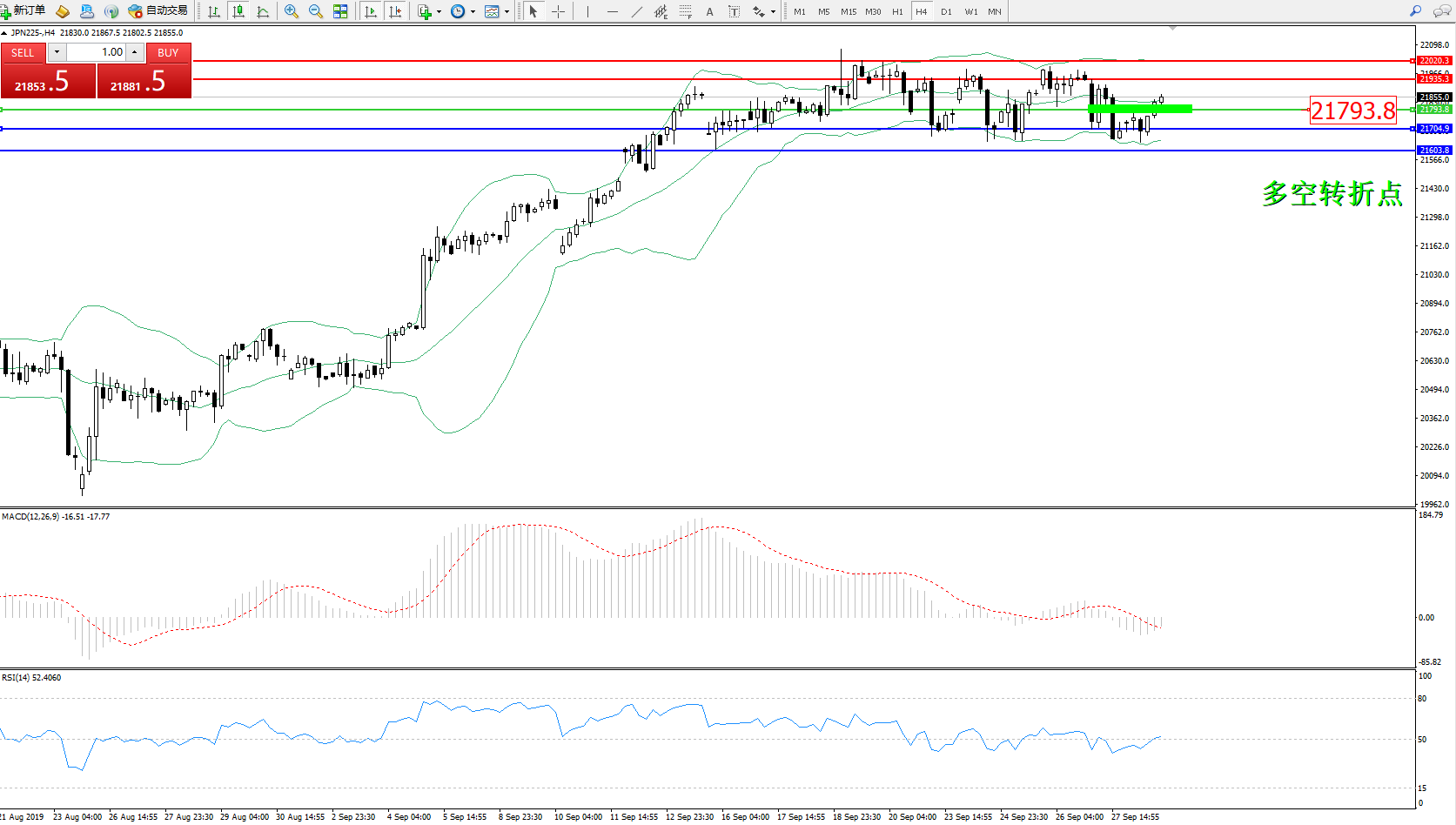 技术点评:高位持续在布林带指标通道内侧弱势震荡数日之久,多空均未最终确定方向,MACD指标处于0轴线附近下方弱势徘徊中,RSI指标处于50均衡线维持来回整理;