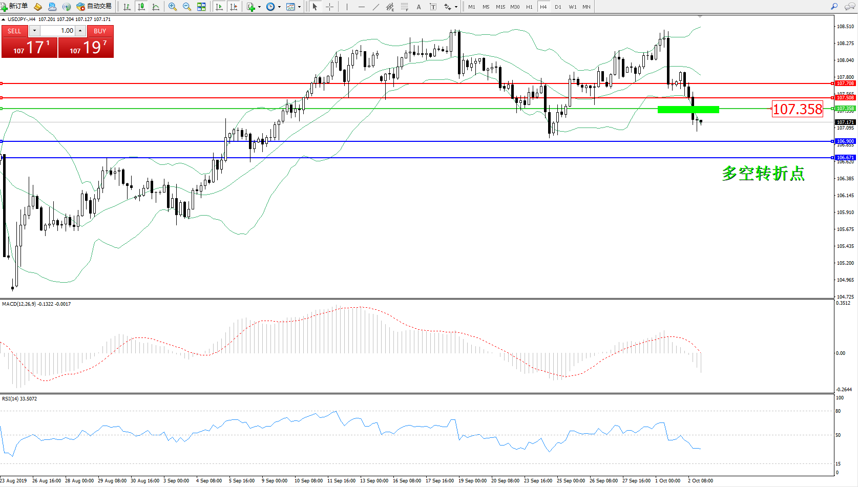交易策略:107.358下方看跌,目标106.900、106.671