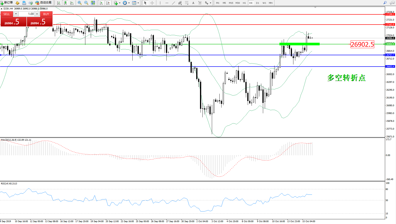 道琼斯指数1015日(周二)收盘上涨237.40点,涨幅0.89%,报27024.80点。道指重新站上27000关口。美企财报季开局强劲,提振股指走高。受联合健康的带动,医疗保健板块领涨,其次是电信业务板块;日常消费品板块和公用事业板块领跌。美国经济就业增长强劲,消费者支出保持健康。戴利还表示,美联储分别于7月和9月降息,应当能够帮助维持经济扩张性;劳动力增长缓慢,生产力没有出现大幅提高,这在未来可能拖累经济增长。