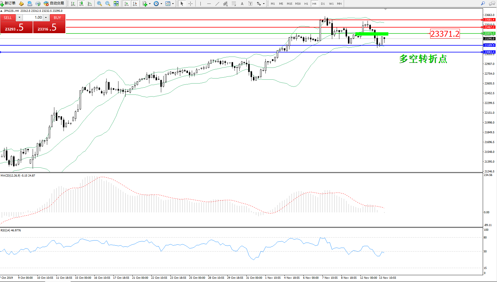 日经225指数11月13日(周三)收盘下跌197.51点,跌幅0.84%,报23322.50点。日本央行行长黑田东彦:现代货币理论没有坚实的基础,认为日本的财政和货币政策基于美国现代货币理论(MMT)是不对的,日本的财政及货币政策基于美国的现代货币理论这一说法并没有现实基础,日本央行购买债券以实现合适的收益率曲线形态,并实现物价目标 ,日本央行正在实施宽松以达到物价目标,如果市场对日本财政失去信心,政府通过发债从市场融资将有困难,维持市场对日本财政情况的信任是很重要的。