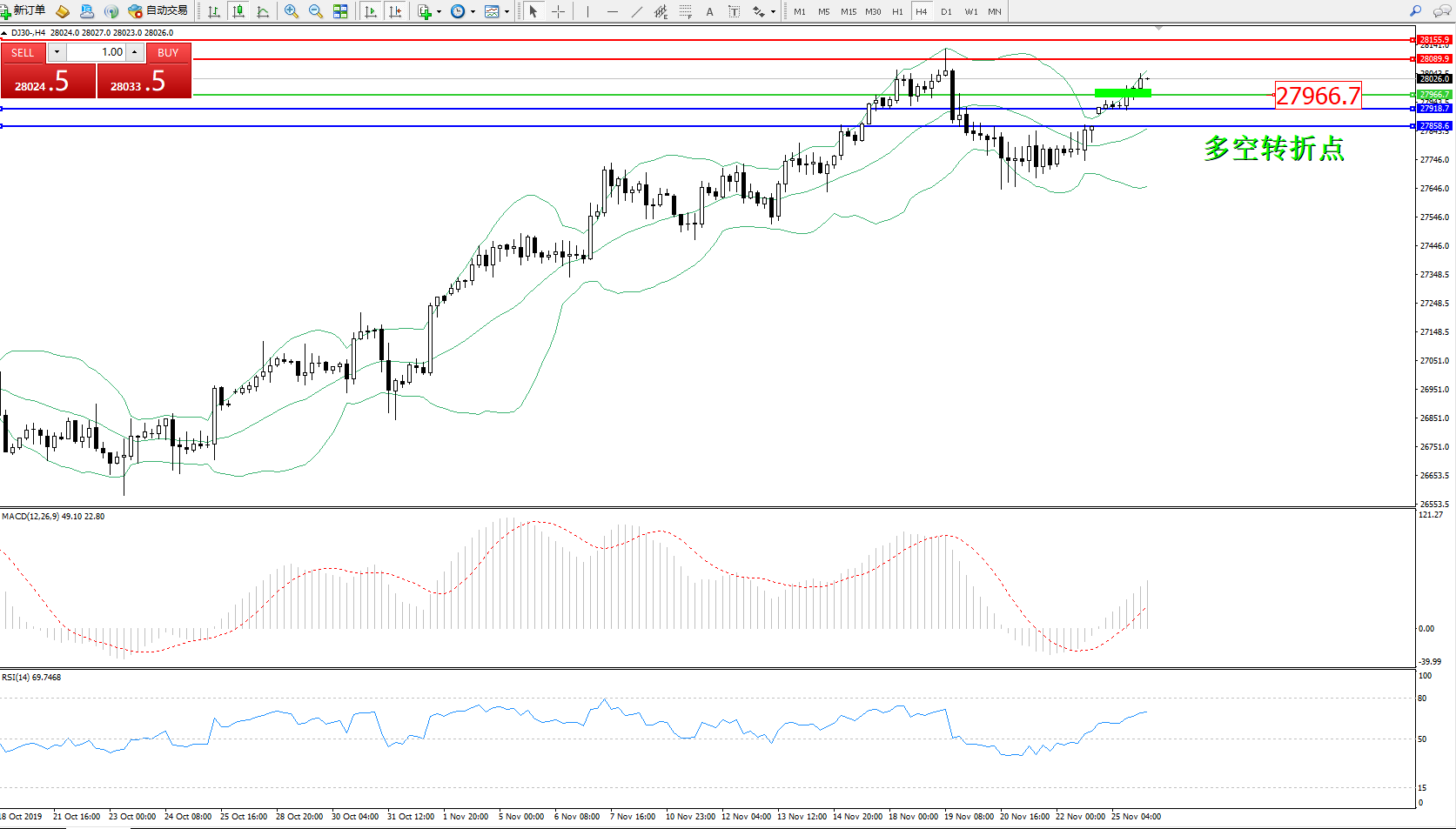 道琼斯指数11月25日(周一)收盘上涨191.00点,涨幅0.69%,报28066.61点,美国股市再创纪录新高,受对贸易关系的乐观情绪以及新一轮并购活动的提振。EP Wealth Advisors投资组合策略主管Adam Phillips表示,如果市场和经济前景不乐观的话,我认为我们不会看到这类交易,这是我们可以看到的另一个表明市场前景是积极的迹象。市场对贸易问题的积极预期使得股市走高,资金纷纷离开避险资产进入风险资产.