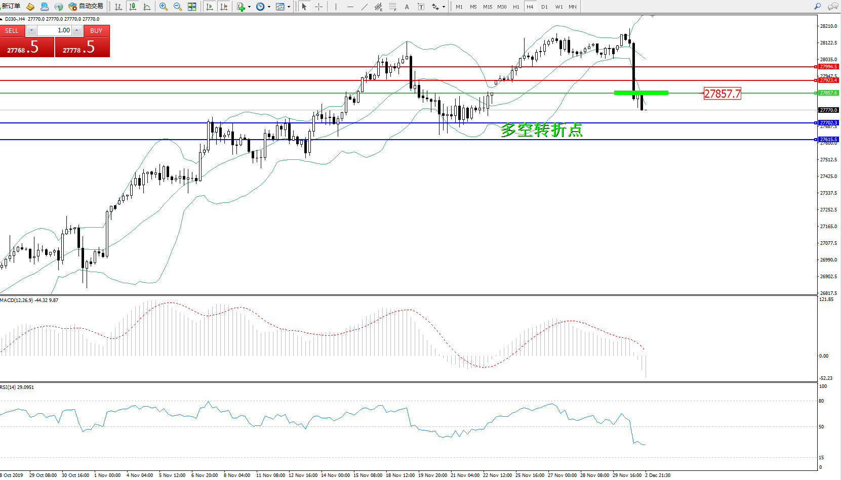 道琼斯指数122日(周一)收盘下跌267.50点,跌幅0.95%,报27783.93点。创6周来的最大单日跌幅。美国11ISM制造业指数连续第四个月萎缩,且建筑支出意外下滑,令市场担心美国可能陷入衰退;美国制造业采购经理指数出乎意料地从48.3降至48.1,接近本轮经济扩张的最低点。特朗普称将恢复针对巴西与阿根廷的钢铁进口税,均令美股承压。