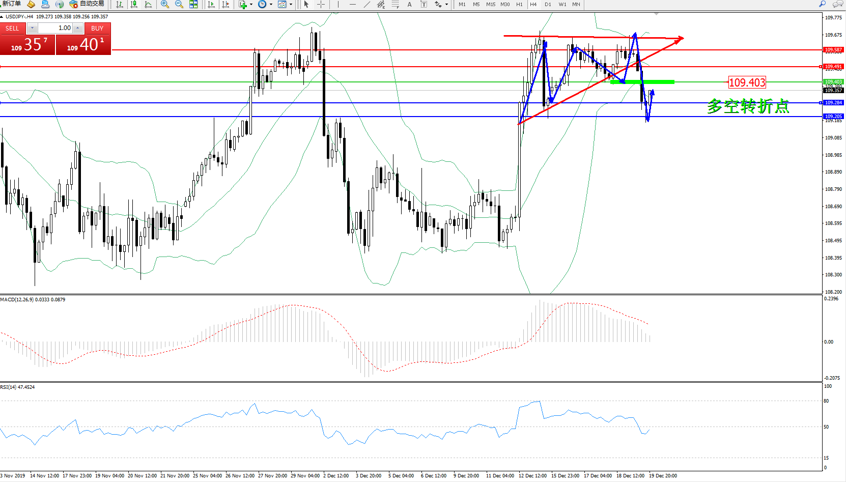 美元兑日元跌0.16%109.37;形成看跌技术形态。日本央行维持政策不变,黑田东彦对全球展望更乐观。日本资产管理公司表现出逢低买进兴趣,日本央行在维持整体经济评估不变的同时,下调了对工业产值的预期,上调了对公共投资的评估。此外,日本央行维持其前瞻性指引,称只要价格动能有可能丧失,利率就将维持在低或更低的水平。