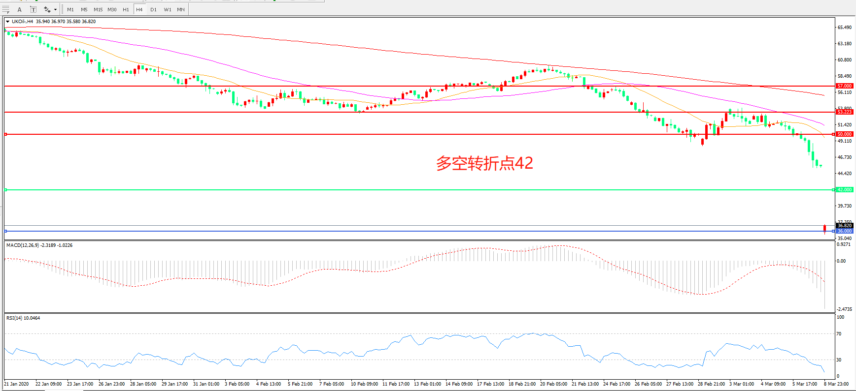 周一布伦特原油大幅低开近30%,创造了历史,截止发稿前小幅反弹,收报36.64美元/桶。