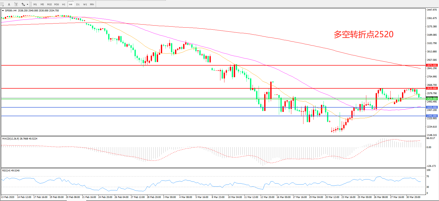 多空转折点:2520.00