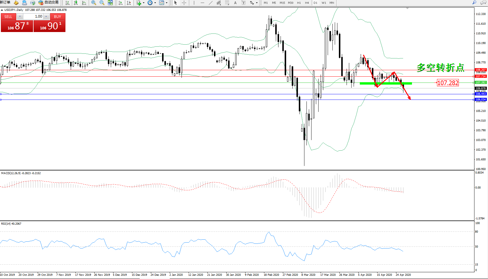 美元兑日元下跌0.35%至106.87,创3月17日以来的六周新低至106.56附近,受益于美元指数的大幅回落,因投资者再度押注美联储可能鸽派行动,此外市场依旧充满不确定性,一方面全球复工的声音越来越广,股票市场有所走高,但另一方面,疫情对经济的冲击可能才开始,复苏之路将较为漫长。美国银行预计在周四的政策会议上,美联储将会发布对美国经济的悲观预估,从而导致资金进入避险货币。