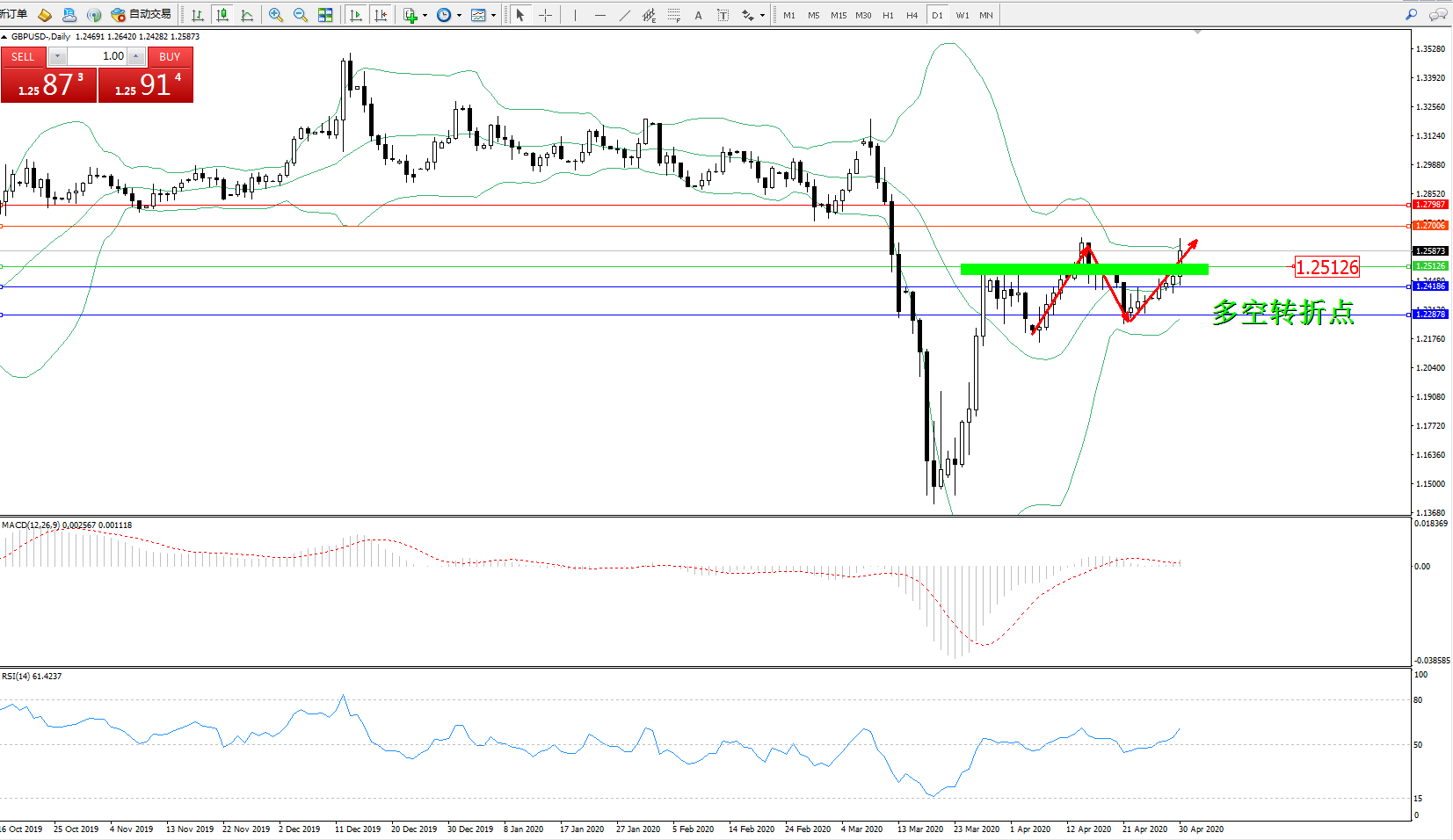 交易策略:1.25126上方看涨,目标1.27006、1.27987