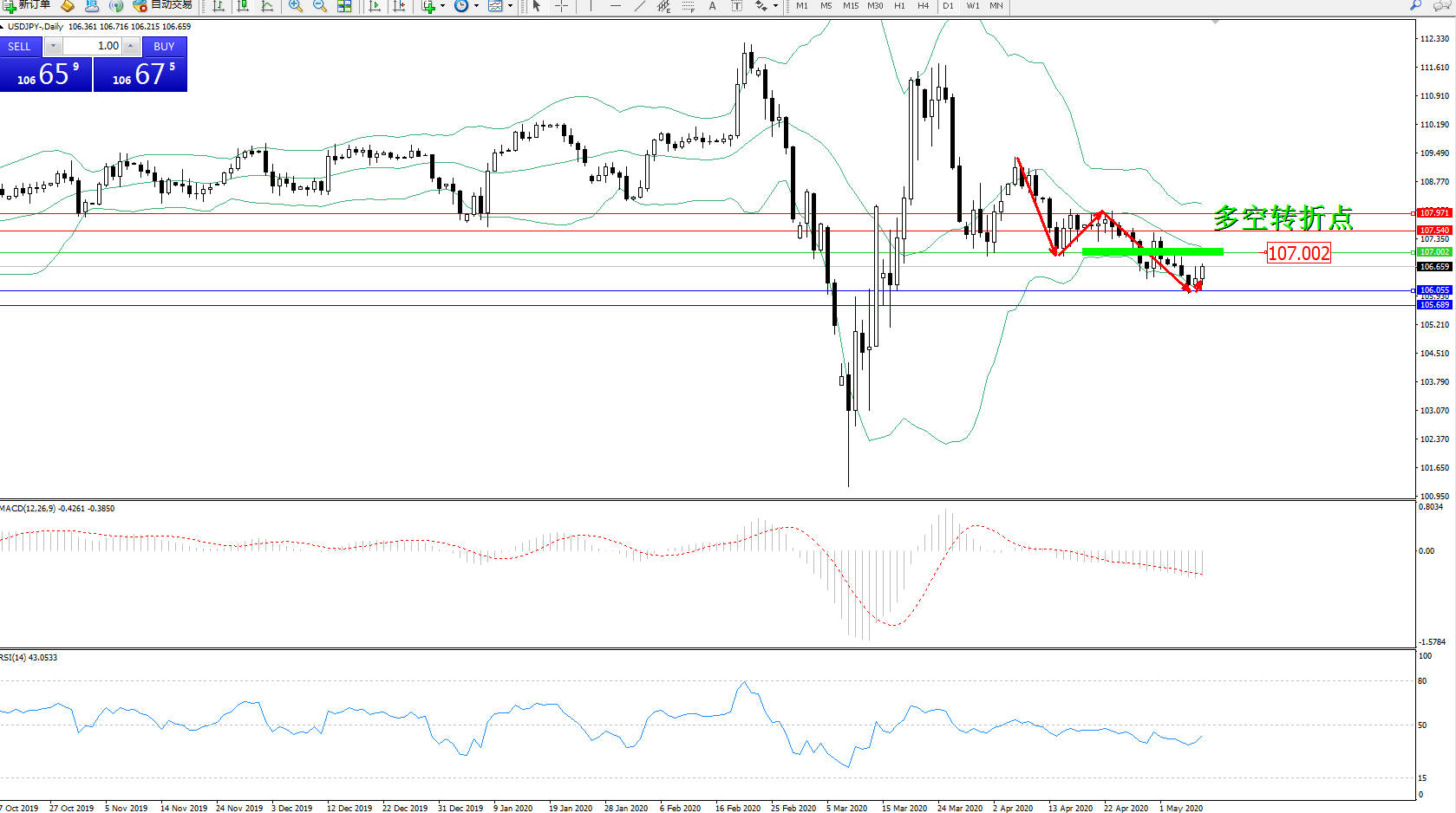 日元连续第二天走势落后由于风险偏好增强及油价上涨,商品货币普遍走高。受投机性空头回补推动,美元兑日元上涨0.35%至106.65,周跌幅收窄。日内随着美国好于预期的非农就业数据公布,市场风险偏好情绪转暖,同时美元指数也转升,日元避险需求减少,此外日本多地也正在着手复工复产,加入到全球复工复产中来,日元兑G10货币整体走低。