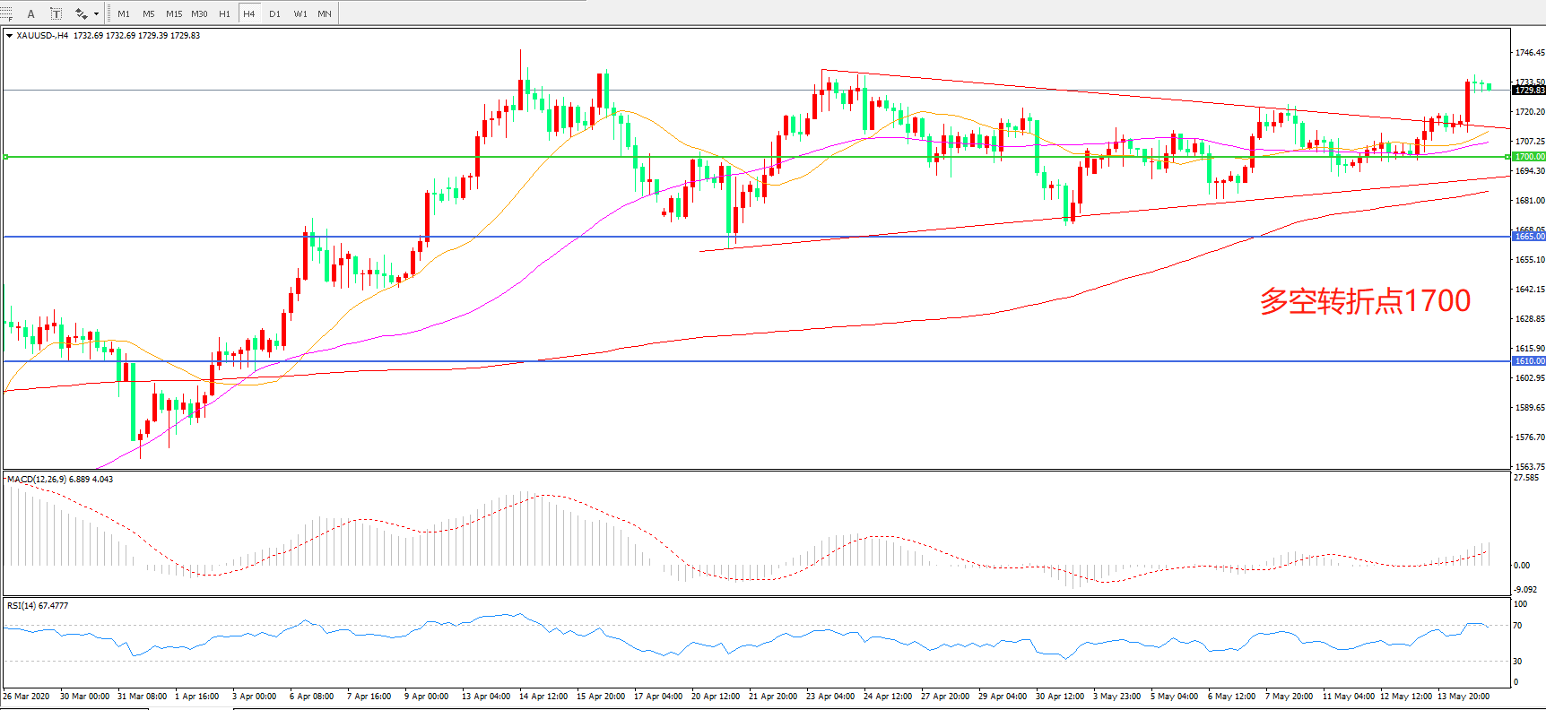 交易策略:  在1700.00 之上看涨,目标1750.00   1785.00