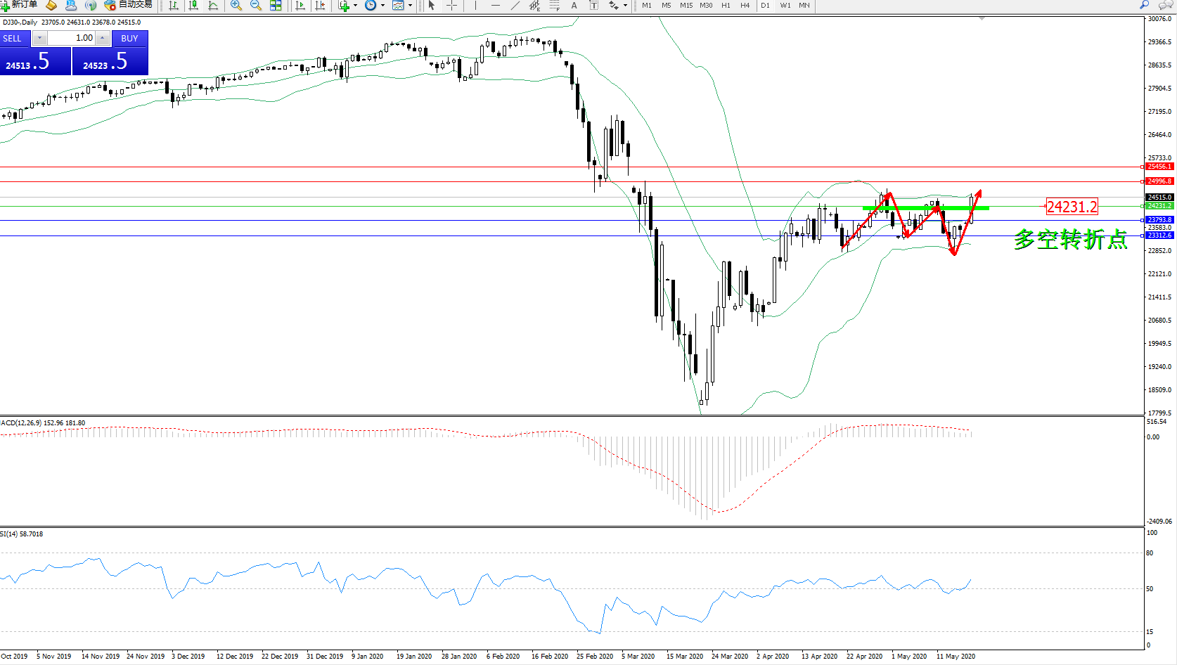 道琼斯指数518日(周一)收盘上涨912.00点,涨幅3.85%,报24597.37点。受疫苗研发乐观前景的报道,市场风险偏好回暖,美国股市飙升至3月初以来的最高水平,验性新冠疫苗研究的初步结果显示良好前景,提振了经济有望加快重启步伐的预期。邮轮运营商、音乐会承办商和航空公司等得益于经济解封的股票大涨。虽然美联储主席鲍威尔称经济复苏之路可能拉长到2021年底,但强调央行有更多政策弹药,鲍威尔谈到美联储并未耗尽弹药,再加上积极的疫苗试验数据,助推股市上涨,这表明市场情绪变化如此之快。
